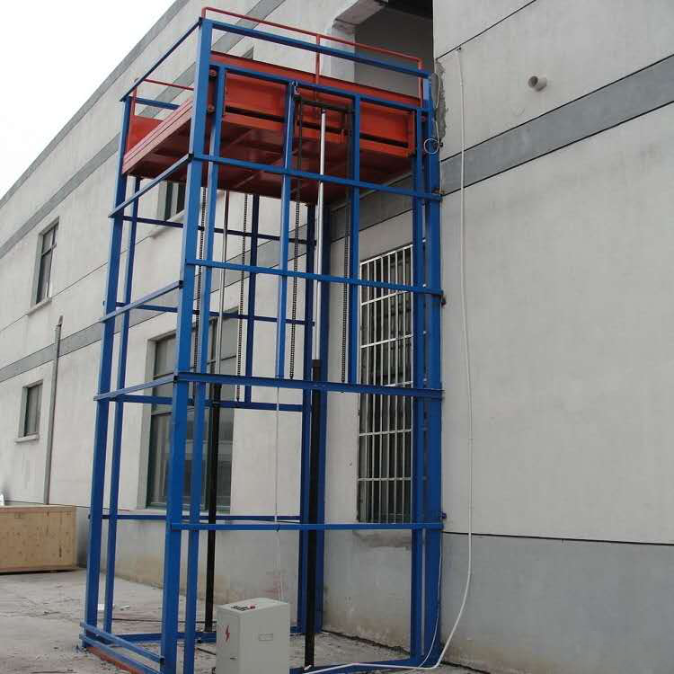在車間、倉(cāng)庫(kù)有些大型的貨物,或者室內(nèi)空間不夠時(shí),可在各樓層室外預(yù)留入口,把導(dǎo)軌式升降平臺(tái)安裝在室外。